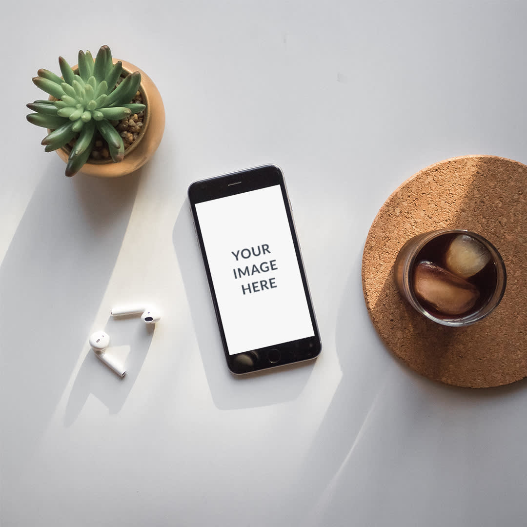 The flat lay + device mock up look provides an over-the-top POV that is quite pleasing to viewers because it’s easy to take in an assortment of objects quickly, while the negative space around the objects is easy on the eyes. Plus, can we just say it looks cool? You can find these types of pics in our stock photo library.