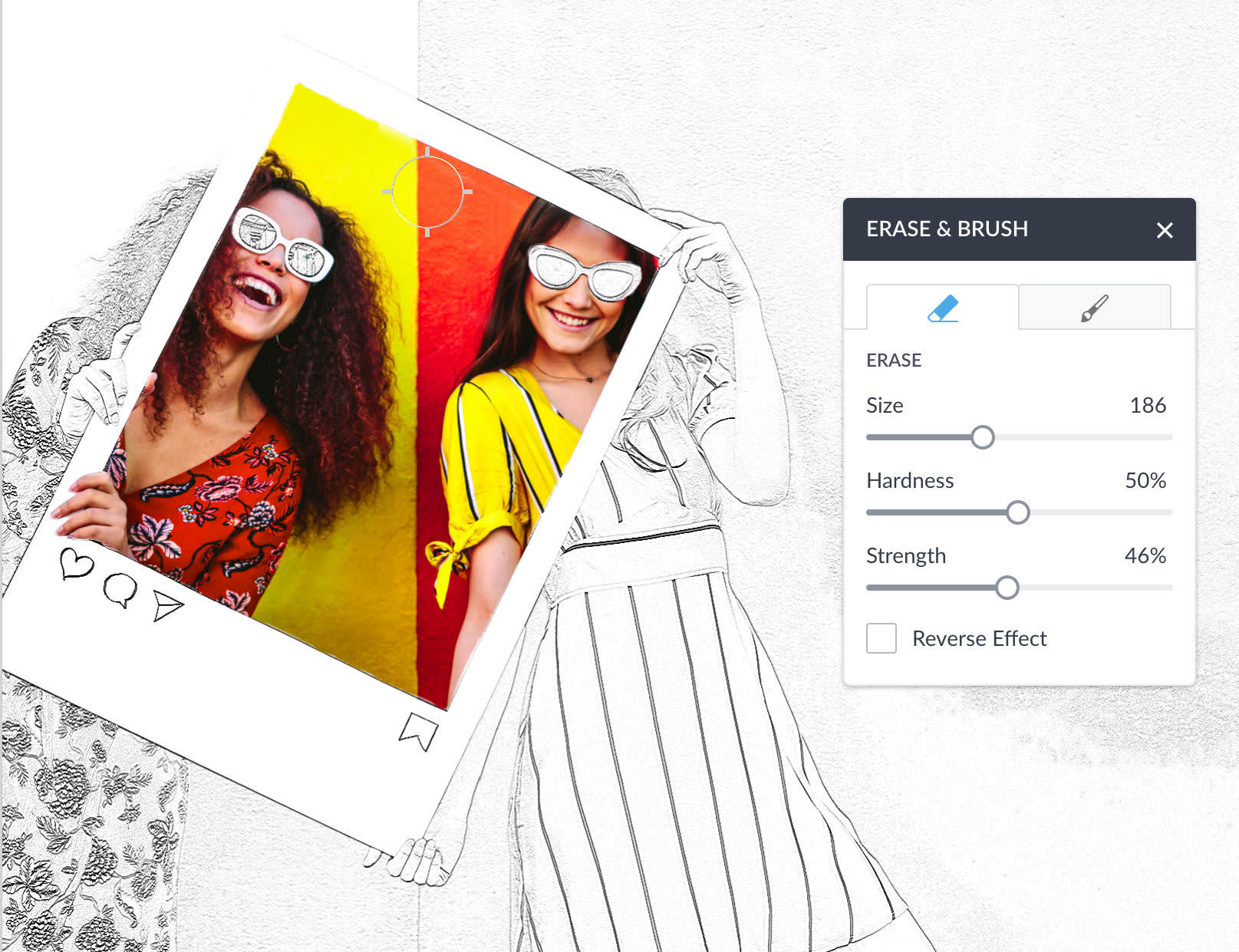 Use el borrador y el pincel para eliminar el efecto de boceto o para volver a pintarlo en su foto.