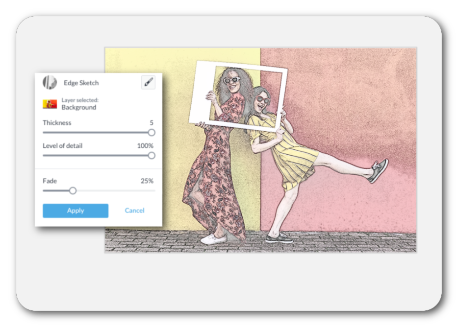 Con todas las herramientas de diseño de vanguardia disponibles, todavía hay muchas tendencias que la policía ve desde hace un tiempo. Probablemente ya esté logrando que las imágenes de su marca se destaquen aplicando efectos fotográficos geniales como película Polaroid, blanco y negro o pixelado, pero si desea ser completamente antiguo, puede darle a su trabajo digital un aspecto dibujado a mano con nuestra herramienta Edge Sketch. Aplíquelo a todas o parte de sus imágenes para obtener efectos sorprendentes, y hágalo en menos tiempo del que se necesita para afilar un lápiz nuevo. ¡Convirtamos una foto en un dibujo!