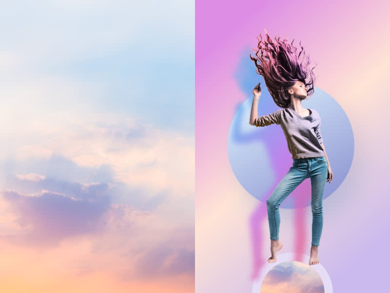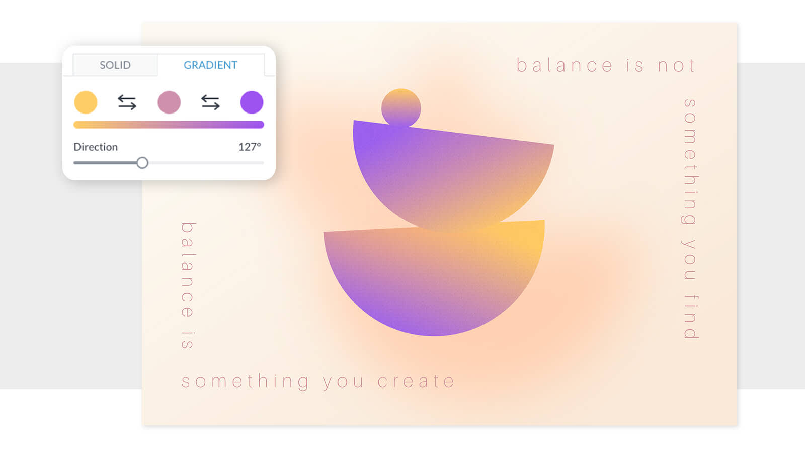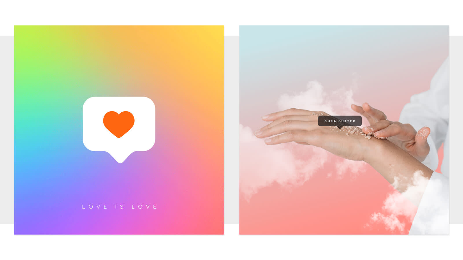 Calm thy senses. Pastel gradients like these are good for wellness brands, lifestyle brands, and messaging that conveys empathy, sincerity, and friendliness. Tip: Choose any pastel color in the PicMonkey gradient color picker, and the tool will offer you a second gradient color that is the same saturation level but a different hue, keeping it in the pastel family.