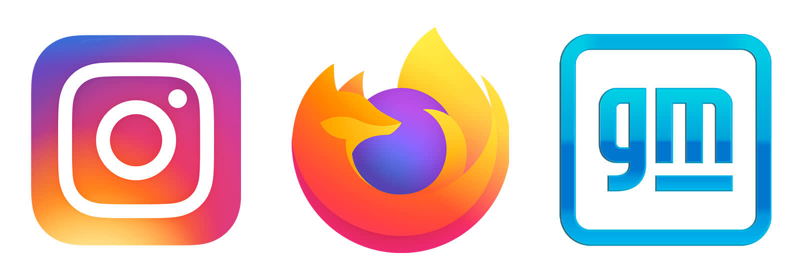 Long seen as the scions of simplicity, logos are current proof that flat isn't (always) where it's at. Technology brands, food brands, even stodgy banking brands have moved over to the gradient way of thinking. In a world where so much brand play happens online, gradients solve for the unique communication problems in 2D interactive space: along with shadows, they add dimension, which invites interaction, especially for clickable content and buttons. Tip: If your brand is often represented in print, you may want to use gradients more sparingly, because they don't always print well.