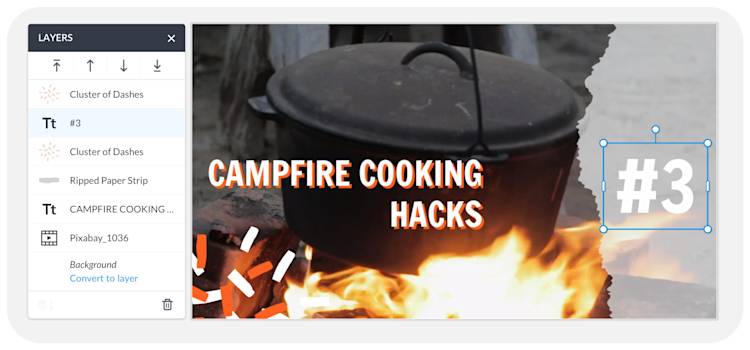 The extremely useful thing about Hub, our cloud-based storage feature, is that it saves your designs as editable layers. That means you can swap out numbers for your top-10 list graphic, or change the background under your logo to reflect the season or the video topic.