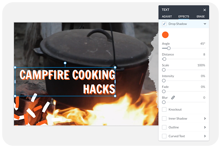 You’ll find a bunch of different fonts in the Text tab in the PicMonkey editor—use one (or more) to emphasize your video content. Typing letters into a text box is just the start because you can also curve your text, add a drop shadow, or apply a texture to your words (yaaas glittery letters!). You can even use any font saved to your computer with our tools, ideal for marketers who need to stick with their branded look. Not sure which fonts look good together? Check out our article about font pairing, and make some groovy looking text in no time.