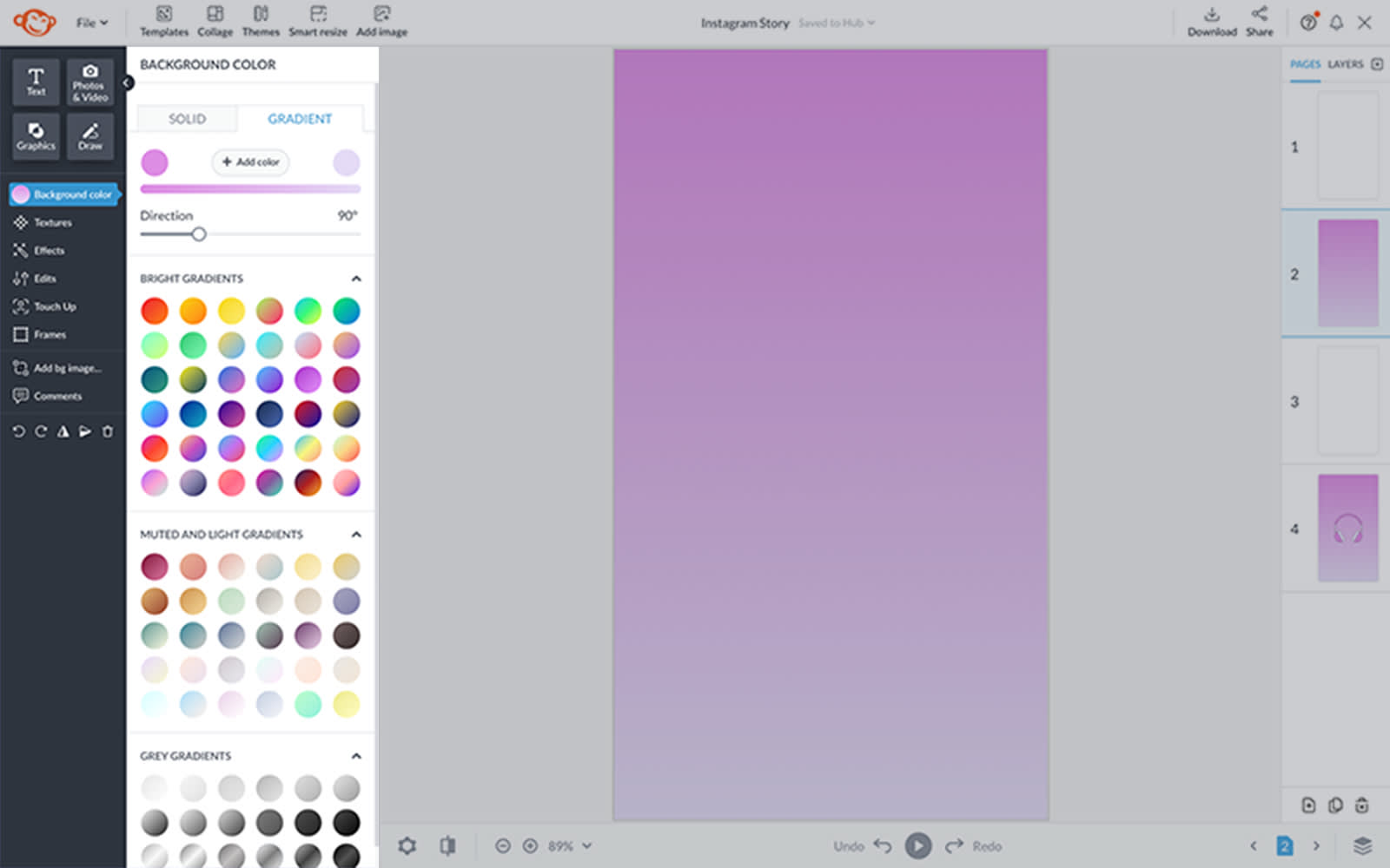 Gradients can be subtle or bold depending on your vibe. Need a boost in color? Simply click on the circular Background color icon on the left toolbar in PicMonkey for pre-set and customizable gradient options.