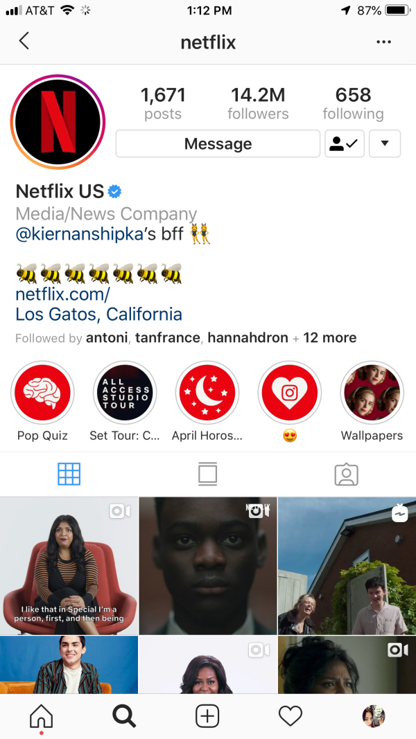 Netflix is keeping things simple by sticking with their red and black brand colors for bold Insta Highlight covers.