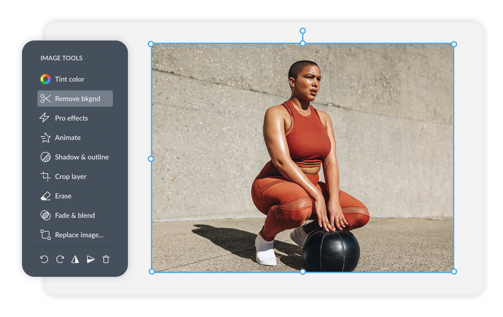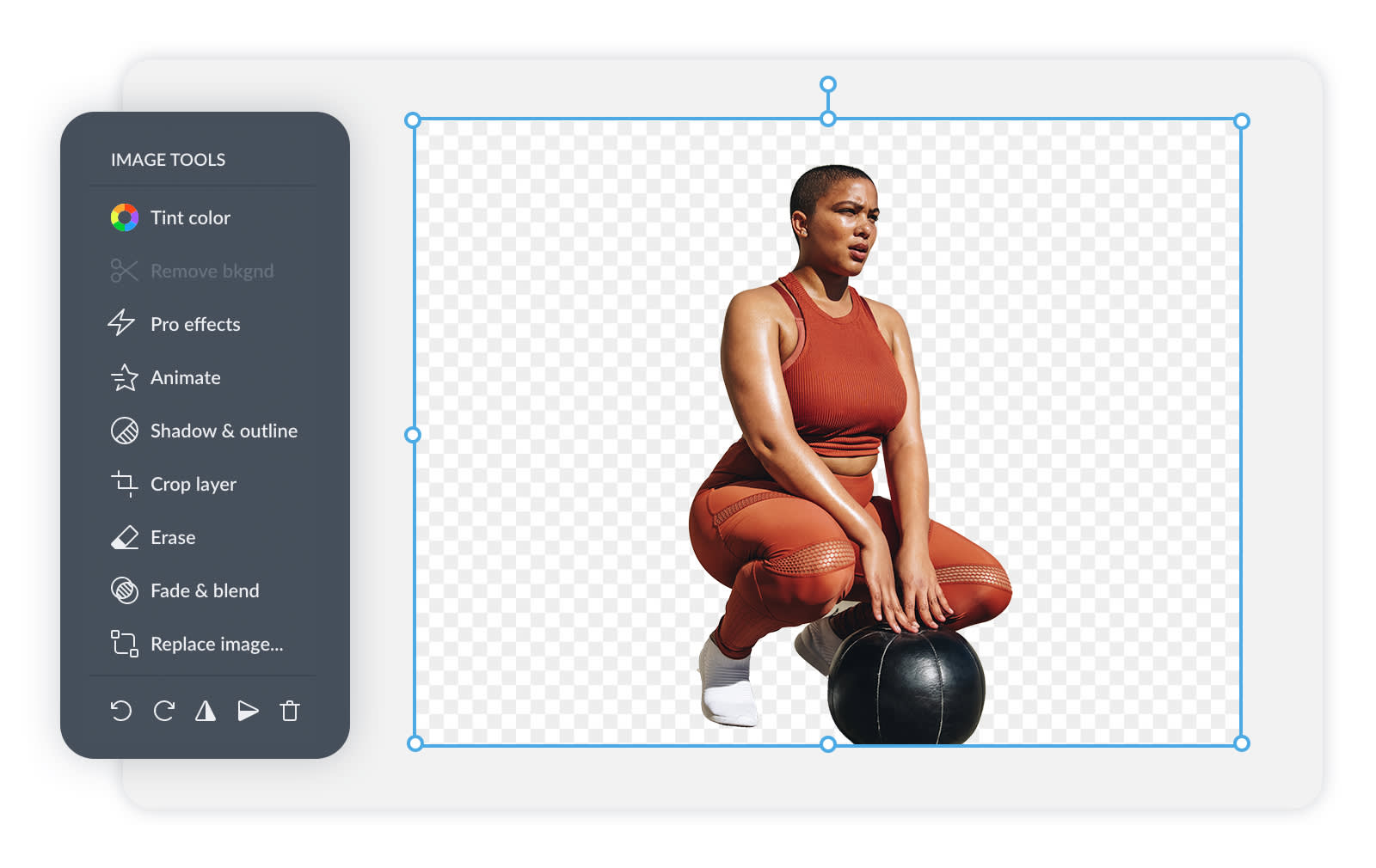 PicMonkey Pro subscribers have access to our automatic background eraser tool. If a photo is a single layer, all you need to do is click Remove bkgnd from the Background Tools menu. It’s just one click and you're done! Plus, only PicMonkey lets you further tweak your erasure afterward by painting back on parts of the background, or, using the eraser tool to remove just a little bit more.