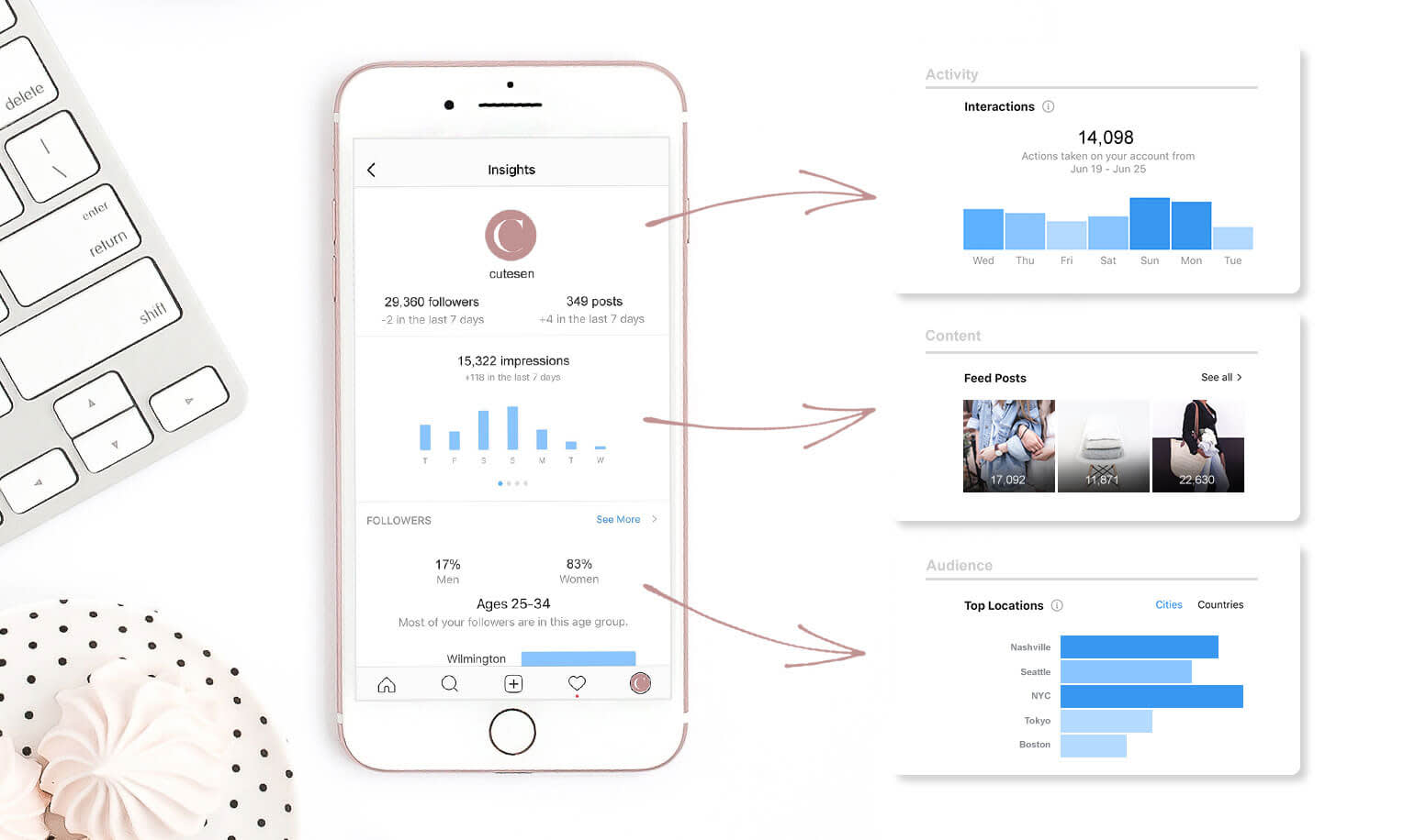 Whatever method you use for selling, it’s only part of the sales equation. You’ve got analytic features at hand, whether you choose Instagram Insights or a third-party app. Analytics are essential to sales — they give you insight (see what they did there?) into what your followers do.