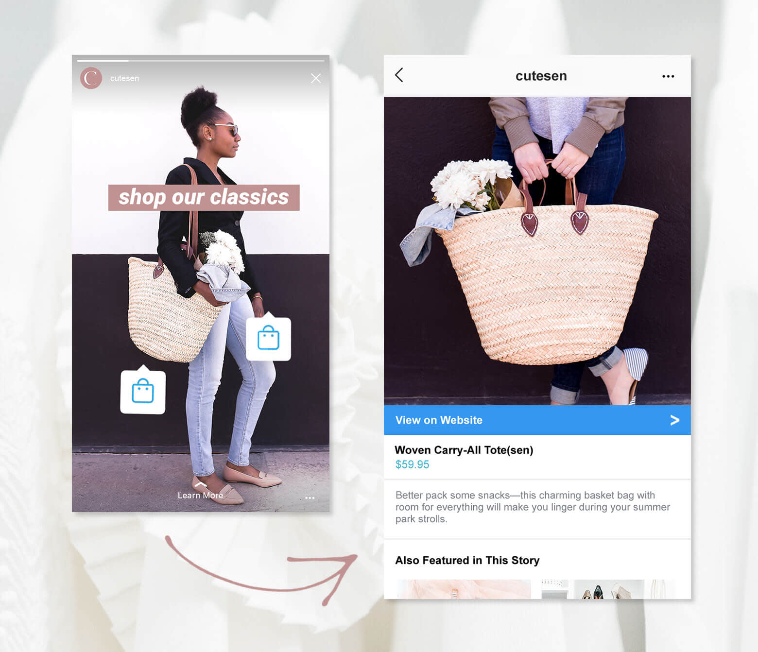 Product tags act like product stickers, but they sit on your posts instead of Stories. When your customers tap tags, they get product info and the opportunity to buy.