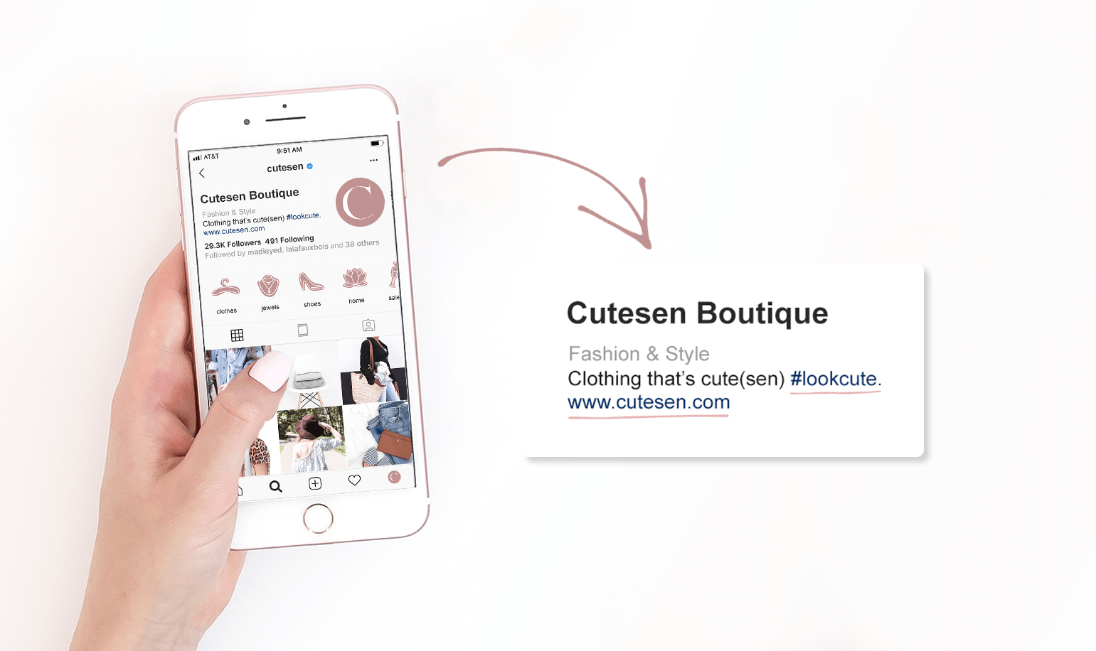 You can put a URL in your bio. This is the “see link in bio” bit that you see all over Instagram. When you add your link, you’re creating a reliable way for people to get directly to your site from your profile. It’s pretty easy, and you can also add some hashtags while you’re there. Every little bit helps.