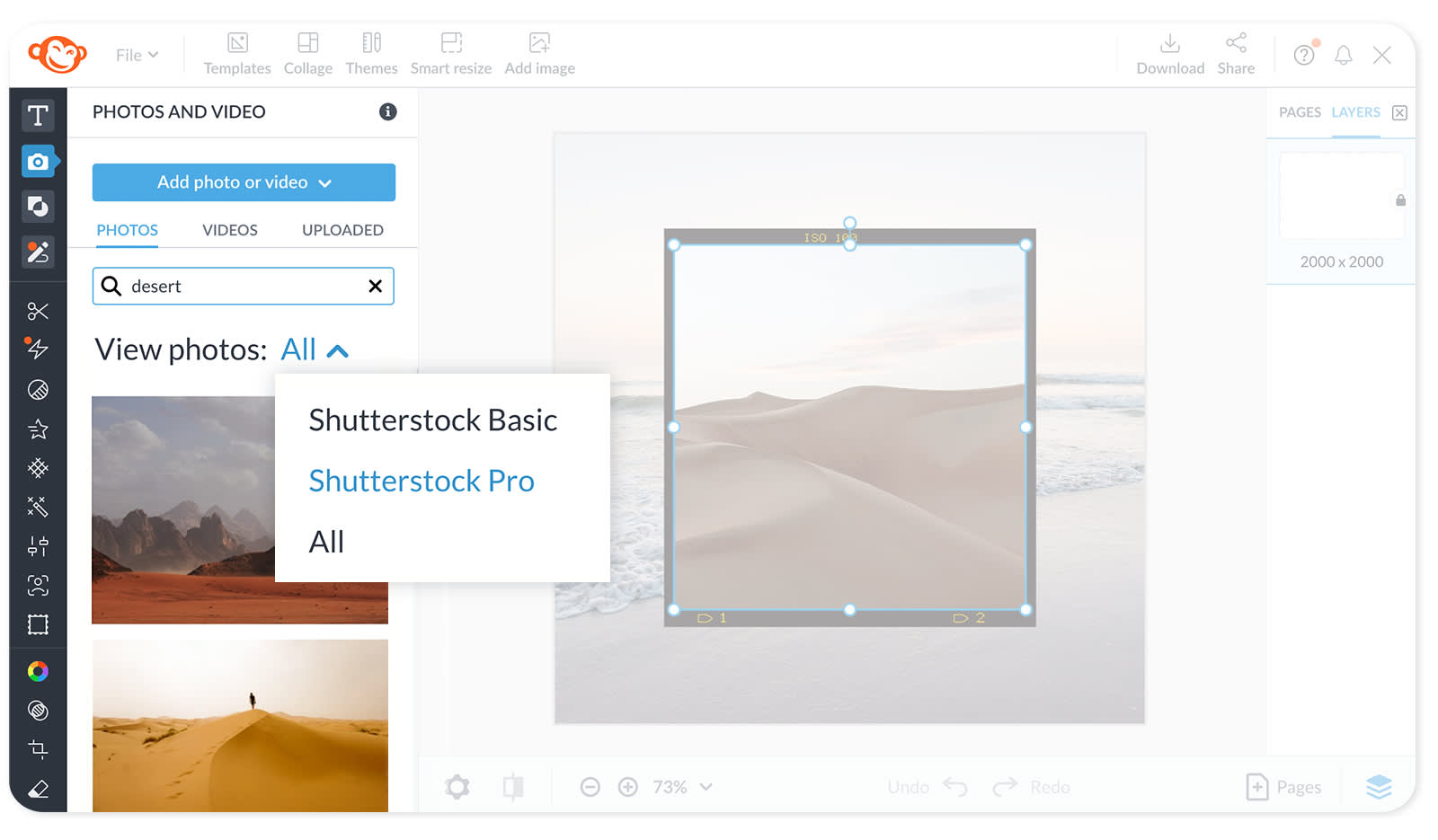 PicMonkey’s stock photos and videos give you a whole new world of beautiful, authentic, unique images that’ll add polish and style to your designs. Best of all, we make it super easy to choose and use millions of stock photos and videos. Read on to learn how to use PicMonkey's stock photos — powered by Shutterstock — for your social posts, websites, marketing materials, and more.