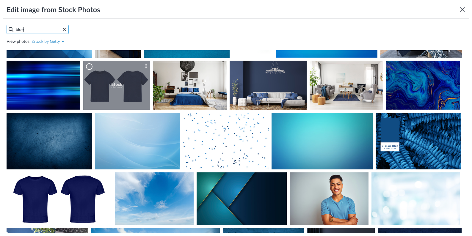 Alternatively: you can click Add image on the top toolbar, then click Stock Photos. You’ll see a full-page library displayed that you can search.
