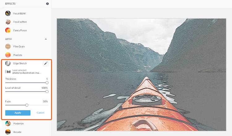 PicMonkey's Edge Sketch tool is a top choice for mastering the art of photo illustration. What's Edge Sketch, you ask? It makes your pictures look like they’ve been traced over in pencil. To achieve this look: