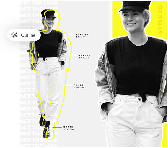 The powerful Outline Tool makes creating modern designs a breeze. Outline your images, text, or graphics and then use the sliders to adjust the Angle, Distance, Thickness, and Color of the outline. It adds just the right amount of arty pop to images.