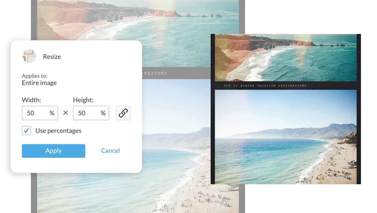 We might be bias, but Smart Resize really is the pinnacle of amazingness. Available for PicMonkey Pro subscribers, Smart Resize lets you create multiple versions of a design in a matter of seconds. This is perfect if you want to see how a design looks in various formats and employ it across different platforms.